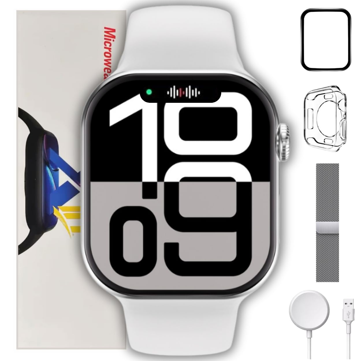 - NOTA IMPORTANTE: Os relógios inteligentes são projetados para ajudar as pessoas a viver suas vidas mais saudáveis. Todos os resultados de medições são apenas para referência. Eles são baseados em algoritmos e sensores super científicos. ITENS INCLUSOS NA CAIXA: – 1 Smartwatch S10 Serie 10 2025. – 2 Pulseiras: 1x Silicone 1x Metal. – 1 Película de proteção. – 1 Capa de proteção. – 1 Cabo Carregador por indução. – 1 Manual de instrução (QR Code atrás da caixa).