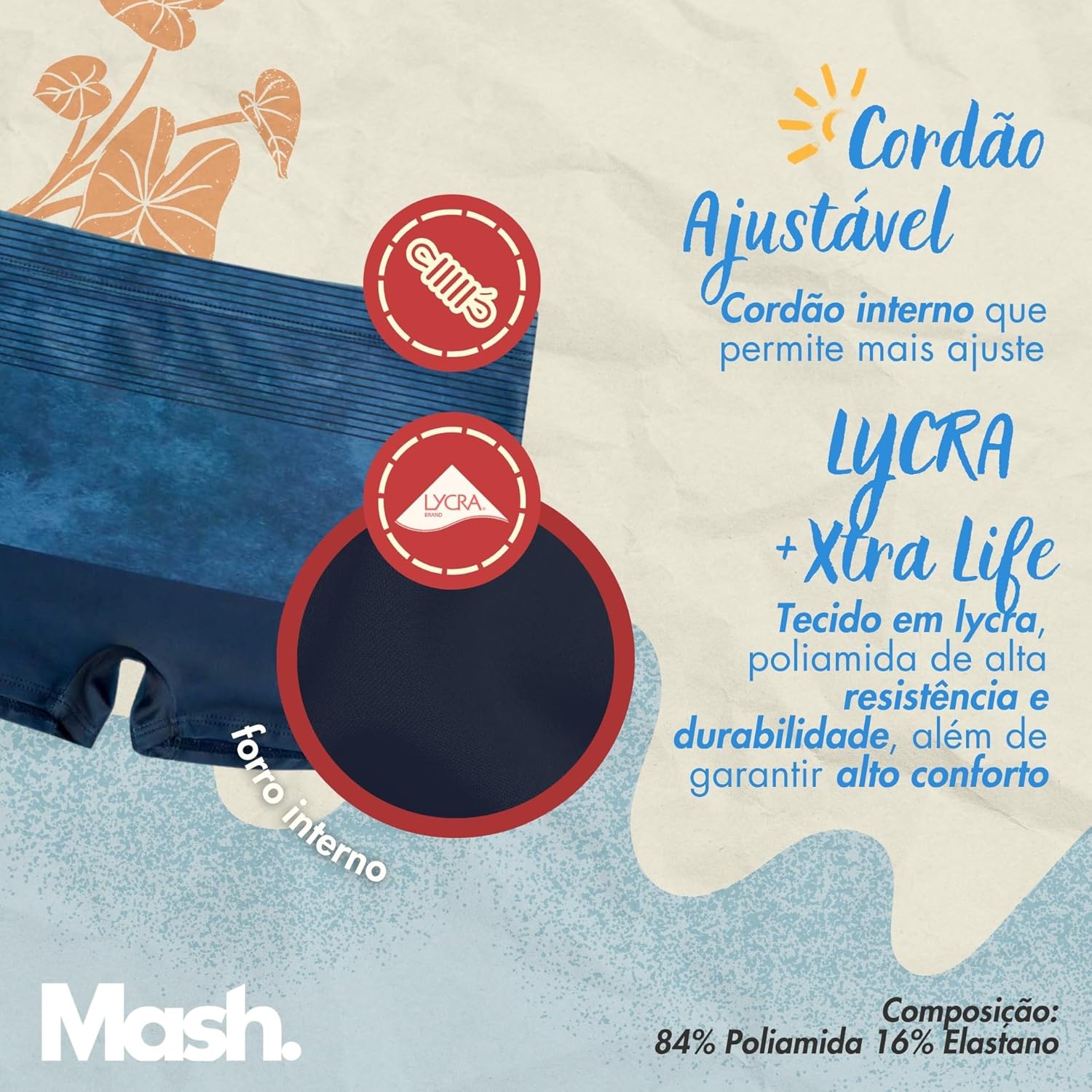 - Estampa Verão: Estampa Deep Sea exclusiva Mash, para você curtir um verão com estilo sem abrir mão da discrição.