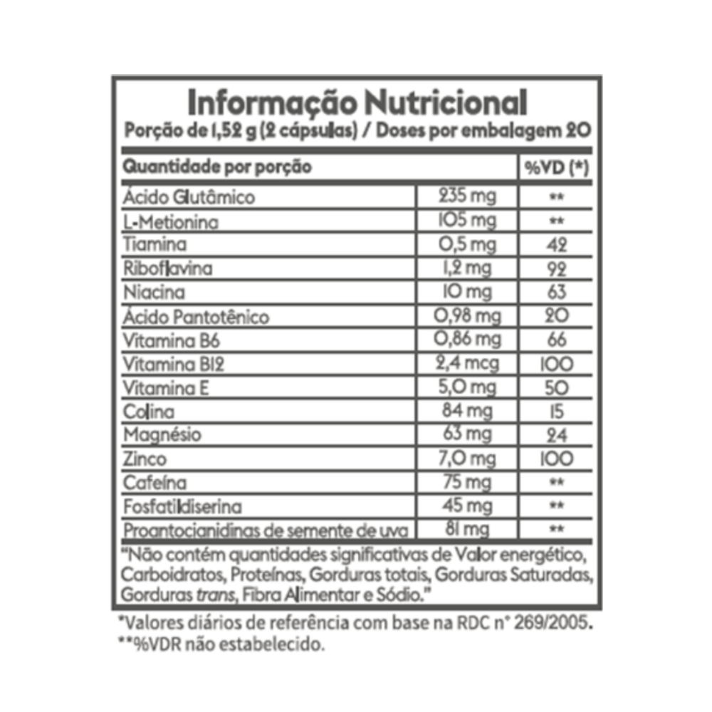 O Active & Flow É Um Suplemento Alimentar De Bitartarato De Colina, Extrato De Semente De Uva, Fosfatildiserina, Cafeína, Aminoácidos, Vitaminas E Minerais Em Cápsulas.