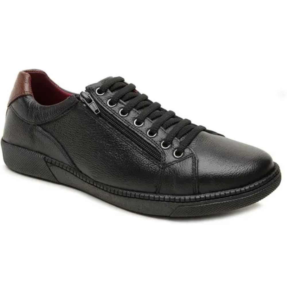 - – Material: Couro Bovino (Legítimo) – Forro: Têxtil Macio Preto (Antibacteriano) – Palmilha: Eva com absorção de impacto – Sola: Borracha antiderrapante (Costurada) – Ajuste: Elástico/Cadarço – Cores Disponíveis: Preto e Café – Tamanhos: 37 ao 44 – Estilo: Casual – Fixação: Sola Colada e Costurada