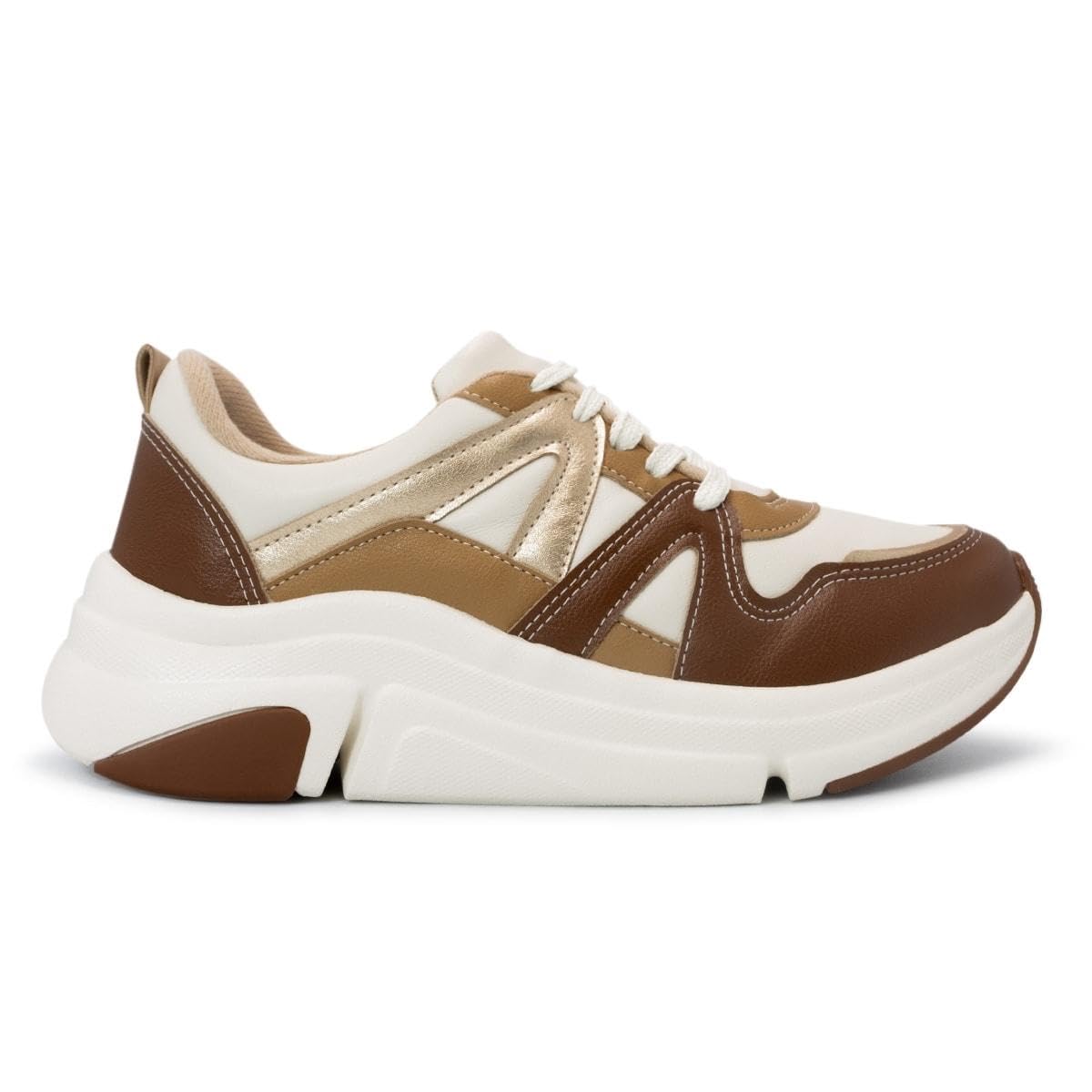 Tênis Modare Feminino Napa Ultraconforto Casual Bco Off/verde/dourado/bege 7401.102.29643.102306 34
