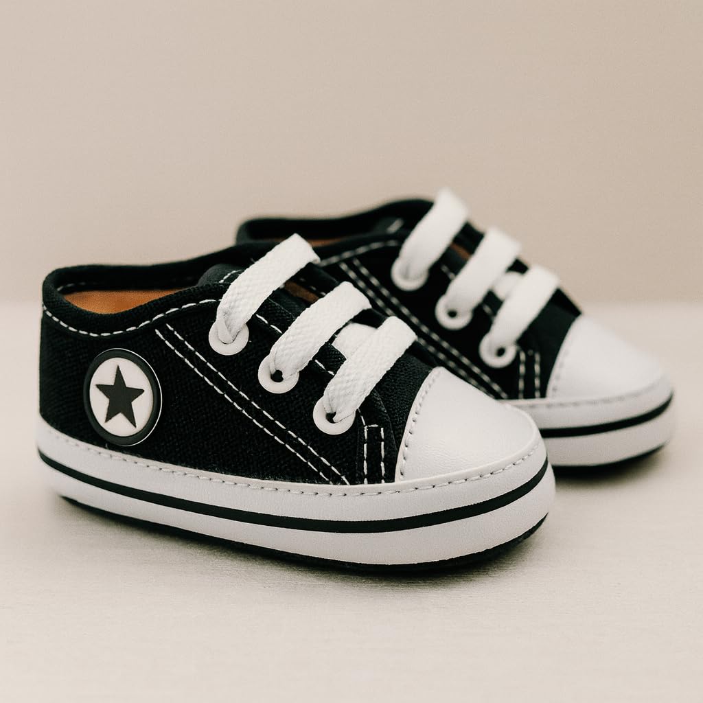 - Qualidade e estilo que encantam Cada par é elaborado com atenção aos detalhes, trazendo fechamento em cadarço que permite ajuste personalizado e detalhe lateral que adiciona charme único ao visual. O resultado é um calçado que une beleza e funcionalidade, tornando-se também uma excelente opção de presente para recém-nascidos e bebês até o primeiro ano.
