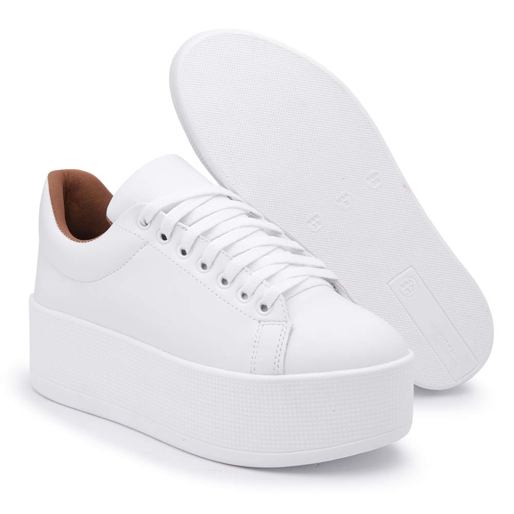 Tenis Plataforma Feminino Branco Sola Alta Fashion Confortavel Original Tenehi