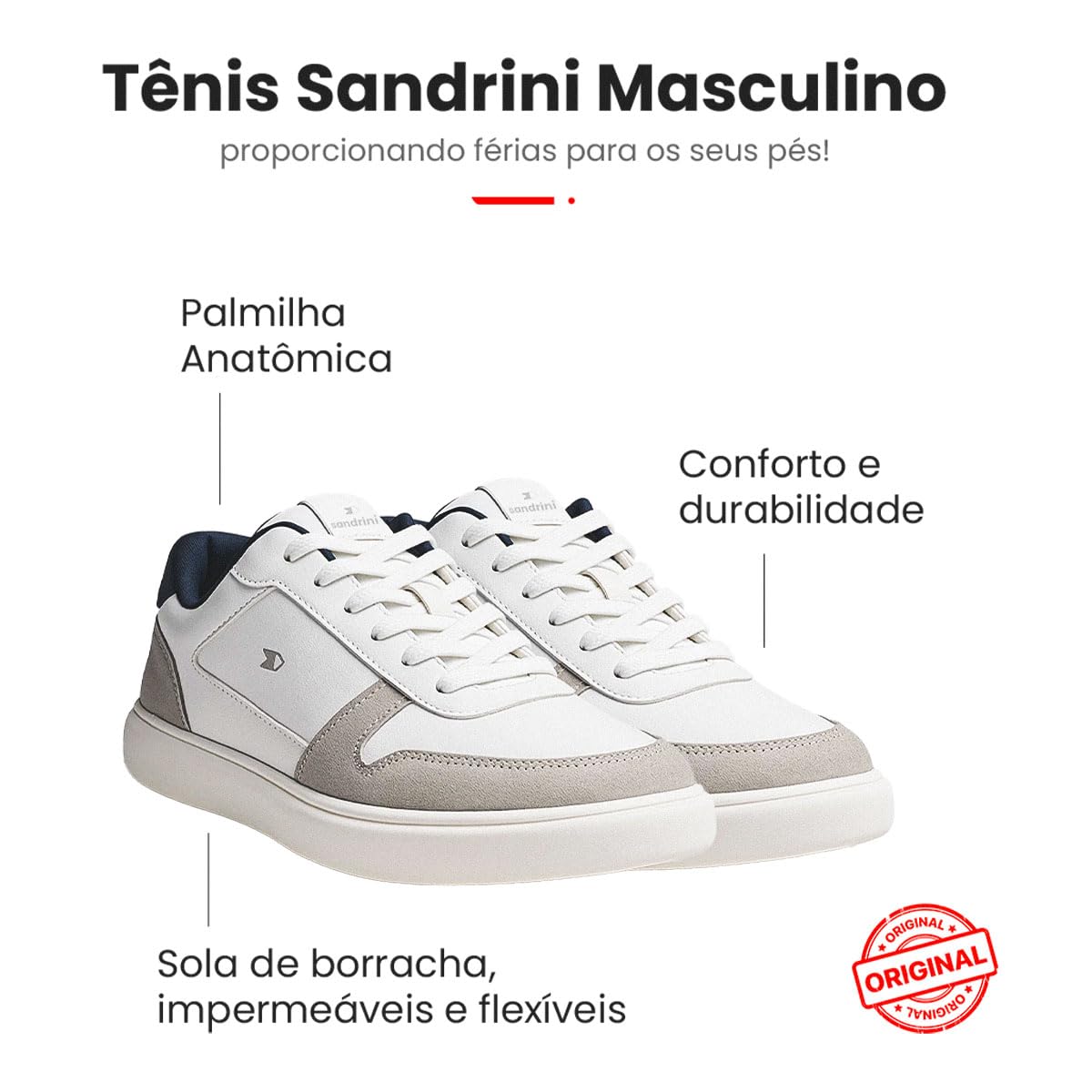 2 avaliações para Tênis Sapatenis Masculino Sandrini Evoke Lite Branco Couro