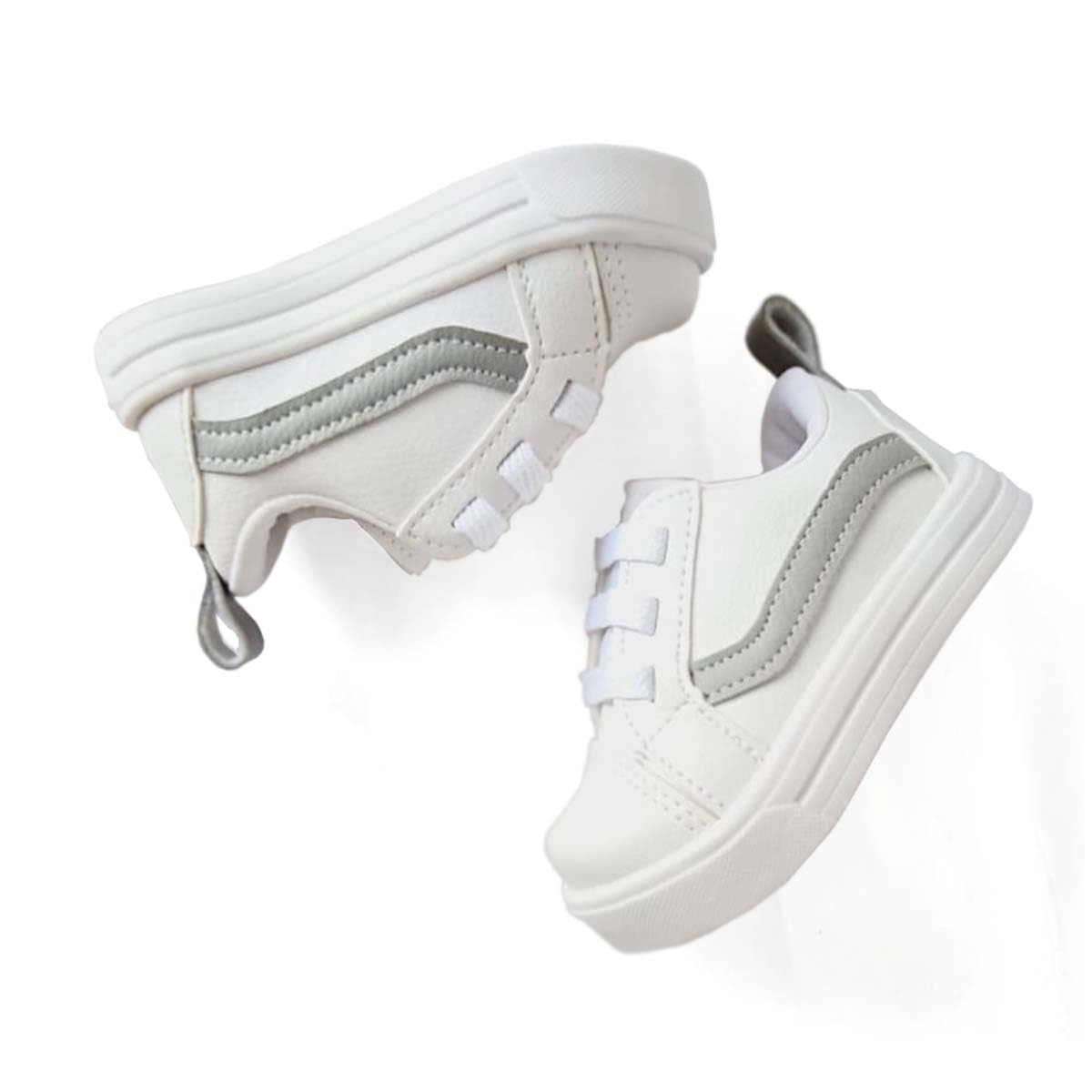 Tênis sapatinho de Bebê e kids | Branco e cinza Casual Batizado e solado antiderrapante Unissex