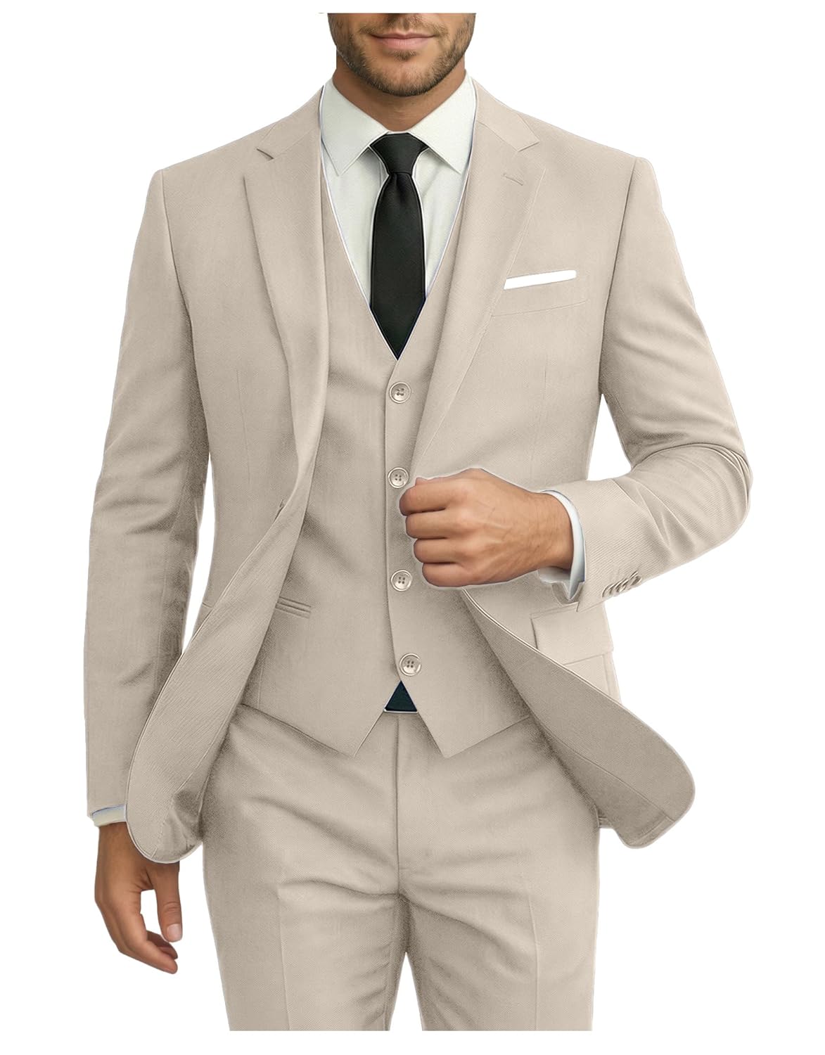- O pacote inclui: blazer + colete + calça, blazer: fecho de dois botões, peito único, lapela notch, aberturas laterais; coletes: quatro botões, decote em V, costas lisas e laço ajustável nas costas; Calça: frente plana, braguilha com zíper, extremidade de botão e aba ajustável na cintura.