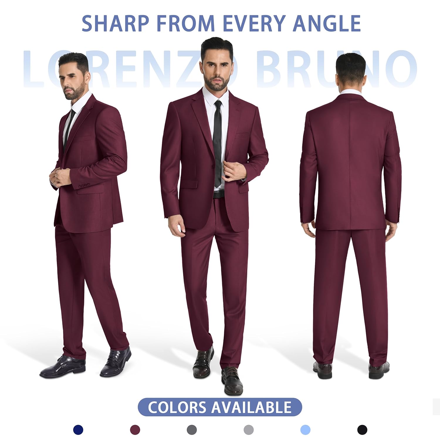 I have been searching for months for an affordable, well fitting and sharp looking suit that I can actually wear to the office as a professional and I have finally found it! The color and fabric are expensive looking and feel luxurious. I have already received compliments and have been asked where I get my suits as they look and feel expensive. These also fit perfectly. I have purchased other suits where the jacket fits but the pants are too big in the waist. I took a chance with this one and was elated to find that the pants and jacket both fit like they were tailored (I’m 6’2” 215 lbs and got the XL which is a 44R jacket and the pants seem to be somewhere around 35X32). I also really like the single button look, you’re only supposed to button the top button on a two button suit anyway. All the pockets on these are real as well, just like on most suit jackets, you have to cut them open as they’re stitched shut for shipping. I own a couple expensive suits and these are my favorites now! I love these so much that I purchased one in almost every color. If you’re looking for a sharp, professional, great fitting suit without the high price tag like I was, I highly recommend Lorenzo Bruno!