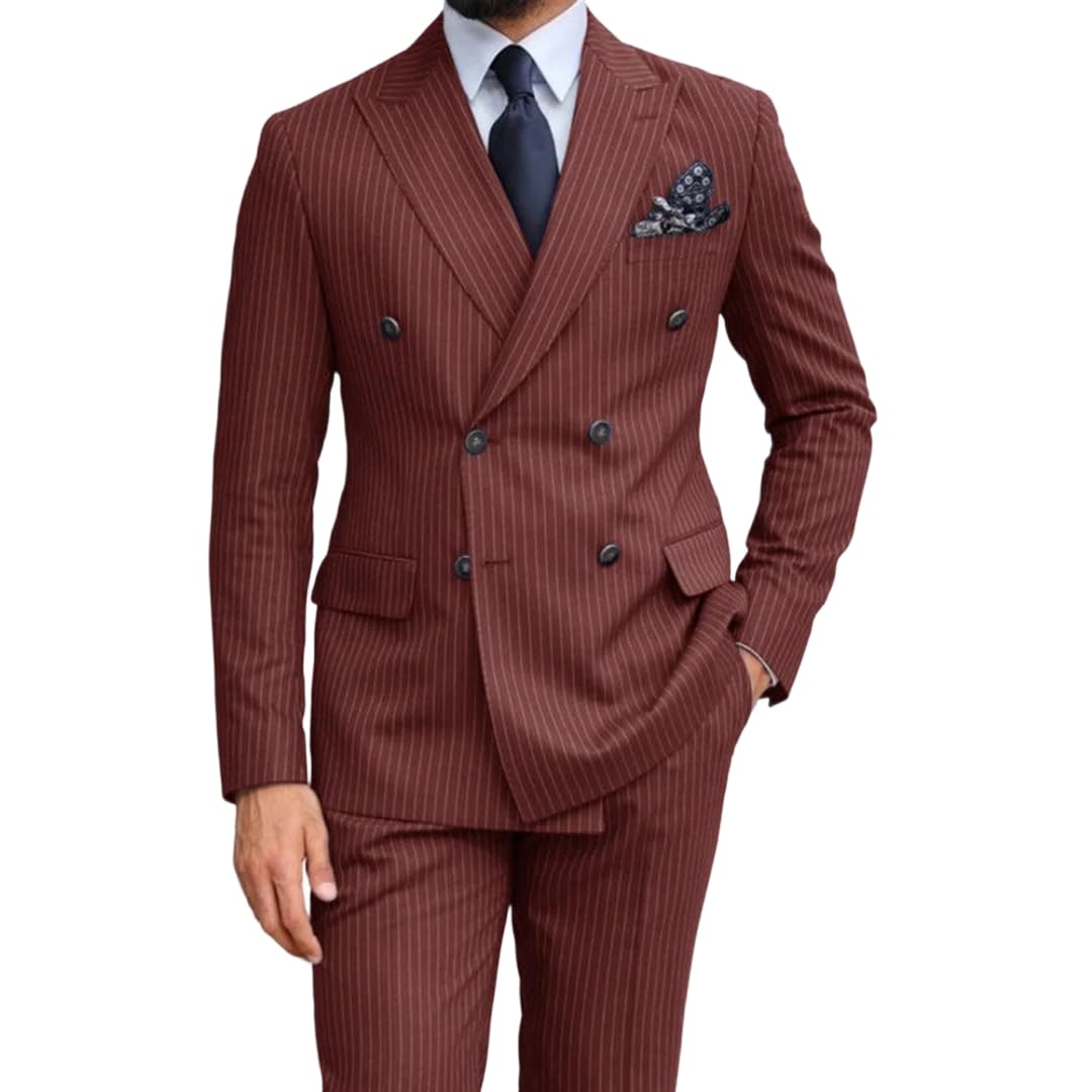 Terno masculino de risca de risca dupla de 2 peças – conjunto de blazer e calça slim fit para negócios, casamento, eventos formais