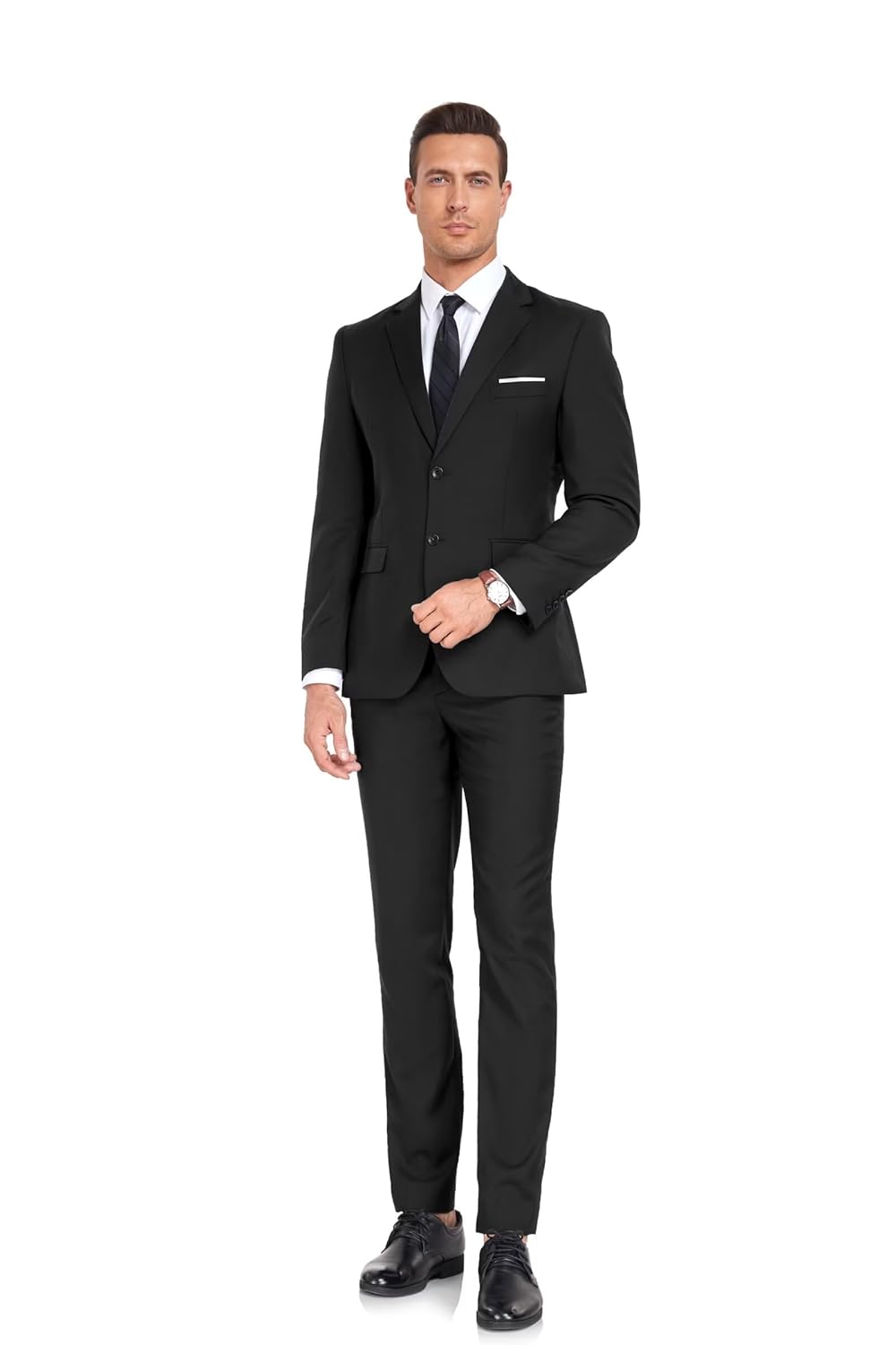 The suit is made from high-quality wool blend fabric, offering great comfort and breathability. The slim fit design gives a sharp, tailored look, and the two-button closure ensures a secure fit. It is perfect for formal occasions such as weddings, proms, and business meetings.
