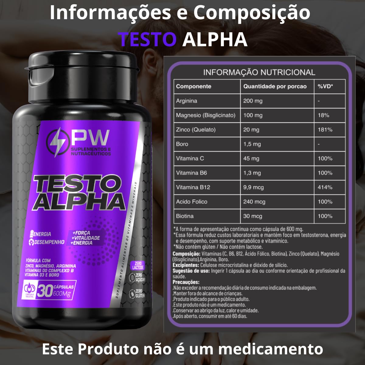 Testo Alpha Suplemento Masculino, Reposição Natural e Completa para Homens