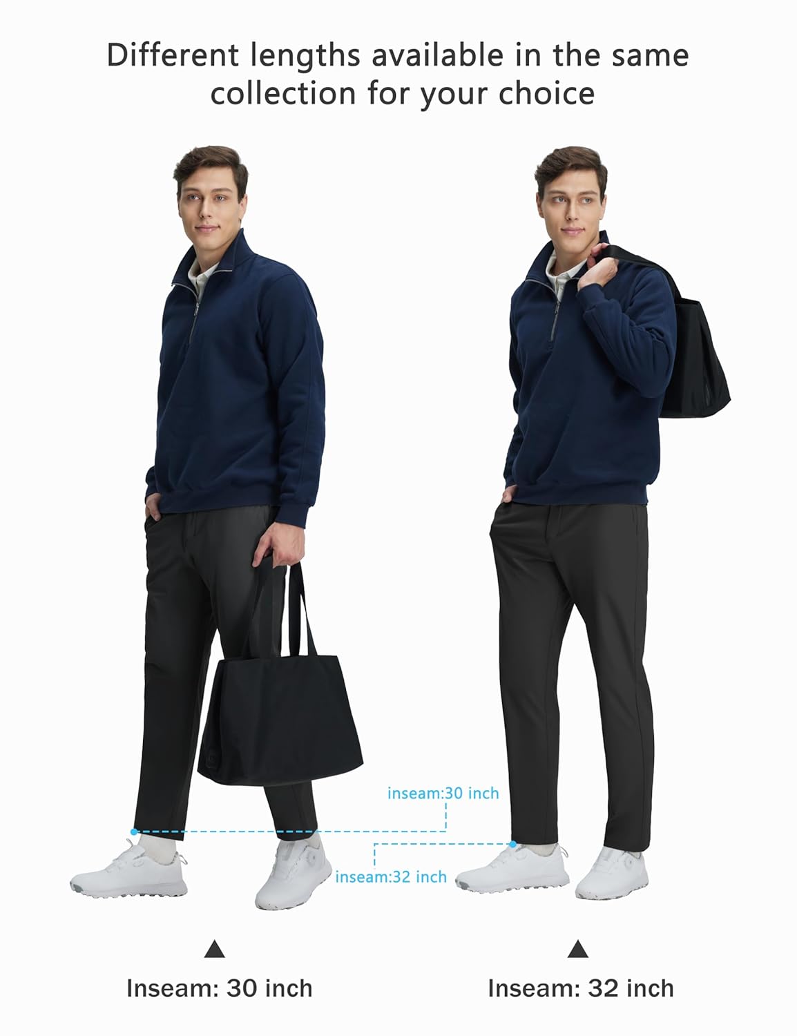 • Regular e levemente forrada com lã: oferece versões regulares respiráveis e levemente forradas com lã, estas calças sociais de golfe oferecem uso leve ou aquecimento aconchegante. Disponível em 76 cm e 81 cm, elas se adequam a diferentes tipos de corpo e necessidades multisazonais.