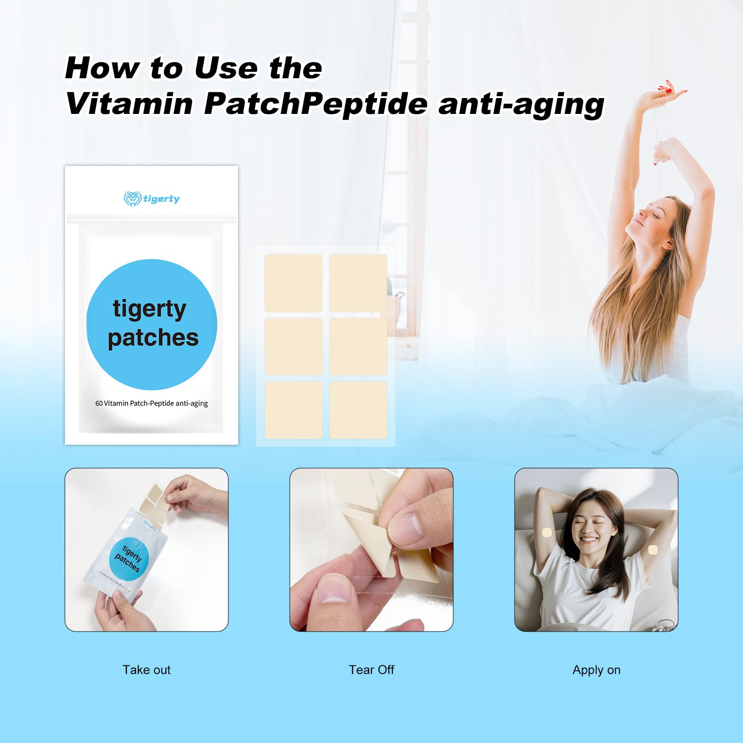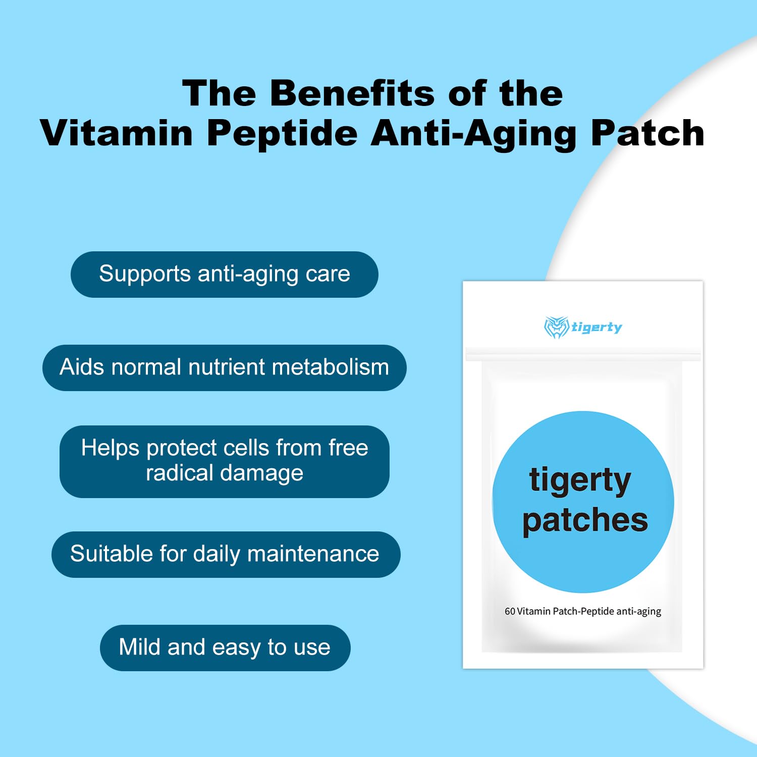 tigerty Adesivo de vitamina – antienvelhecimento, 60 peças (6 almofadas x 10 folhas) com CoQ10 e EGF, renovação transdérmica para suporte celular, gesso para redução de rugas…