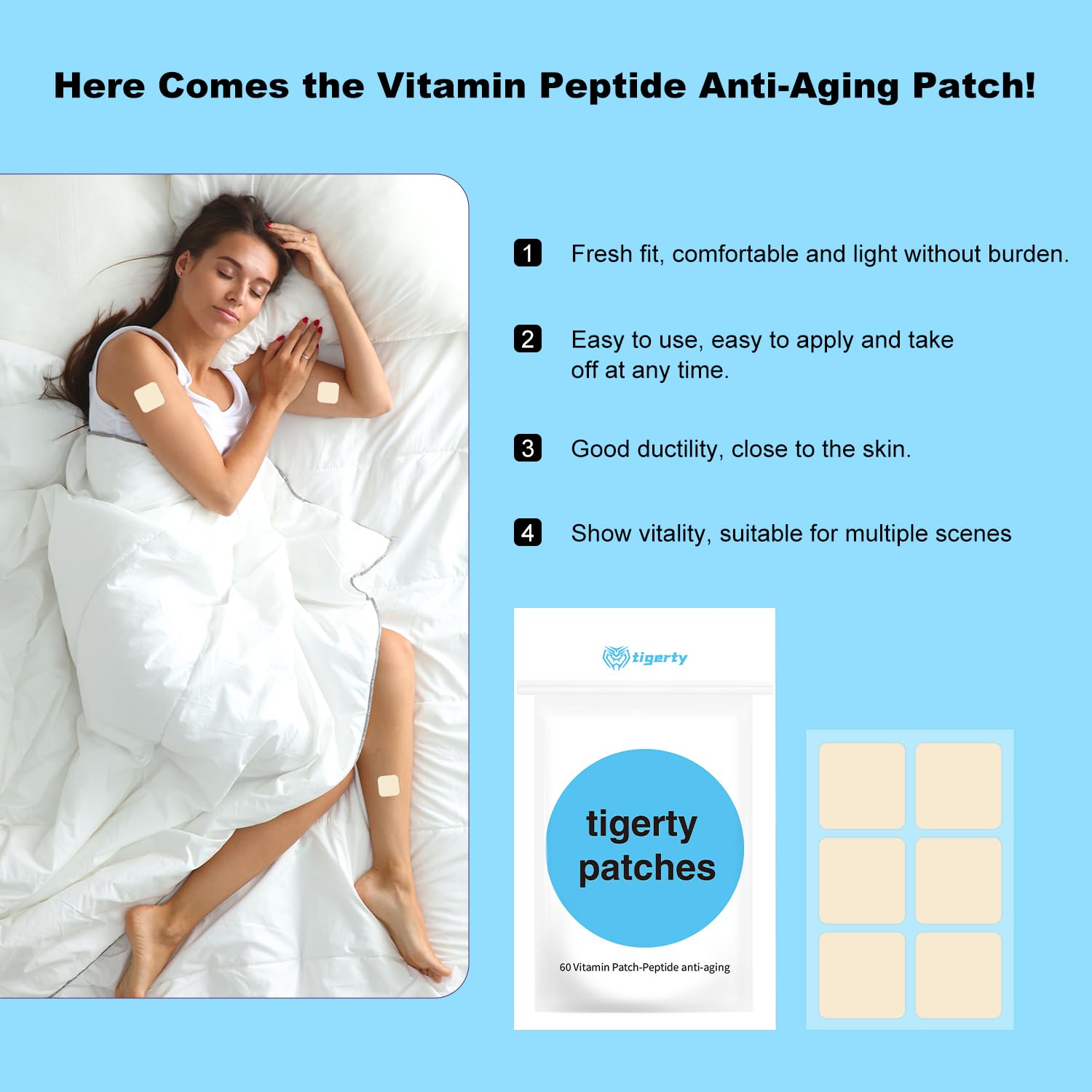 Especificação: tigerty Adesivo de vitamina – antienvelhecimento, 60 peças (6 almofadas x 10 folhas) com CoQ10 e EGF, renovação transdérmica para suporte celular, gesso para redução de rugas…