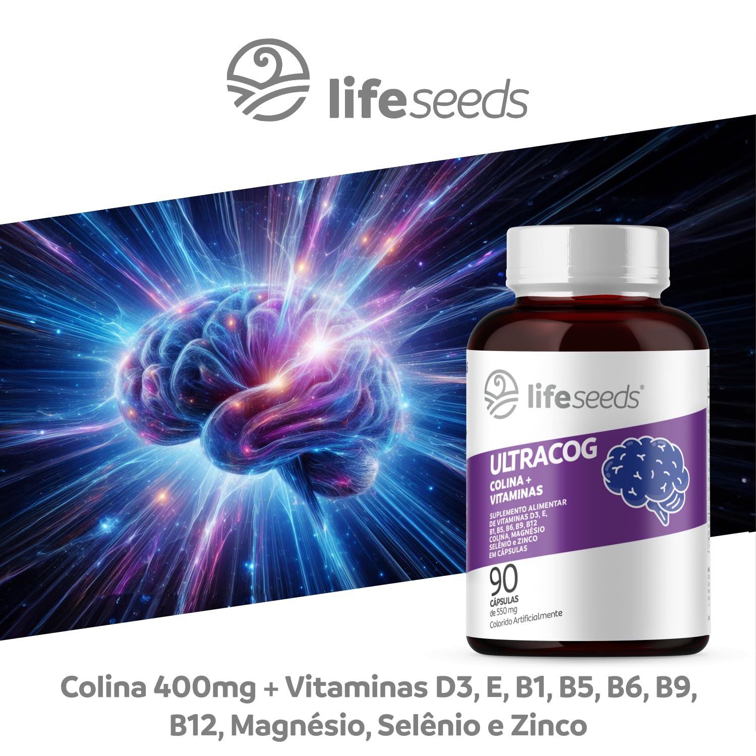 Olá, sou o consultor Juarez. Veja abaixo as melhores oportunidades para ULTRACOG – Colina 400mg + Vitaminas D3, E, B1, B5, B6, B9, B12, Magnésio, Selênio e Zinco – 3 Potes – 270 Cápsulas