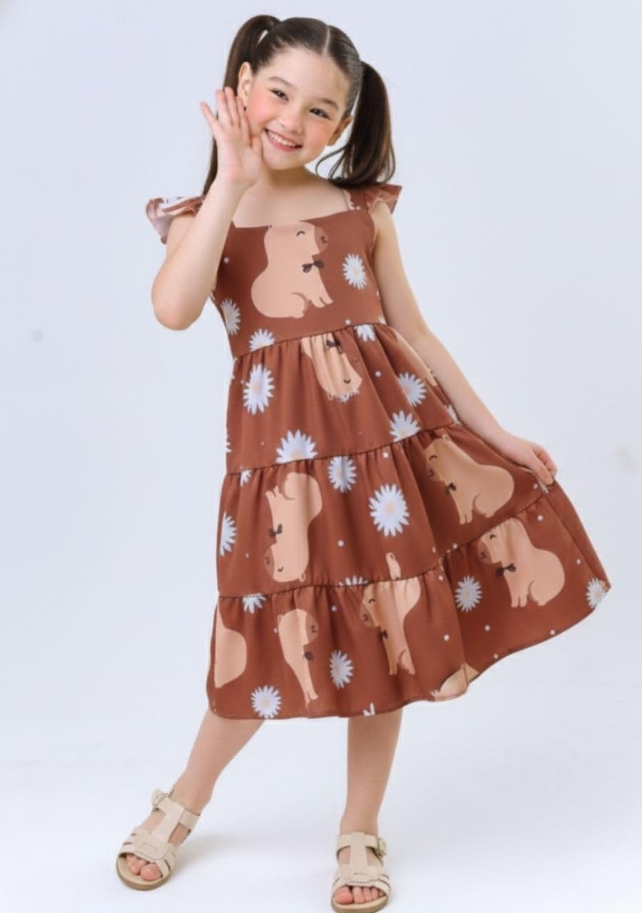 Oferta! Hoje é o melhor dia para comprar Vestido infantil menina estampa da Capivara na cor Marrom com aquele preço que você procura e ainda com as melhores condições!