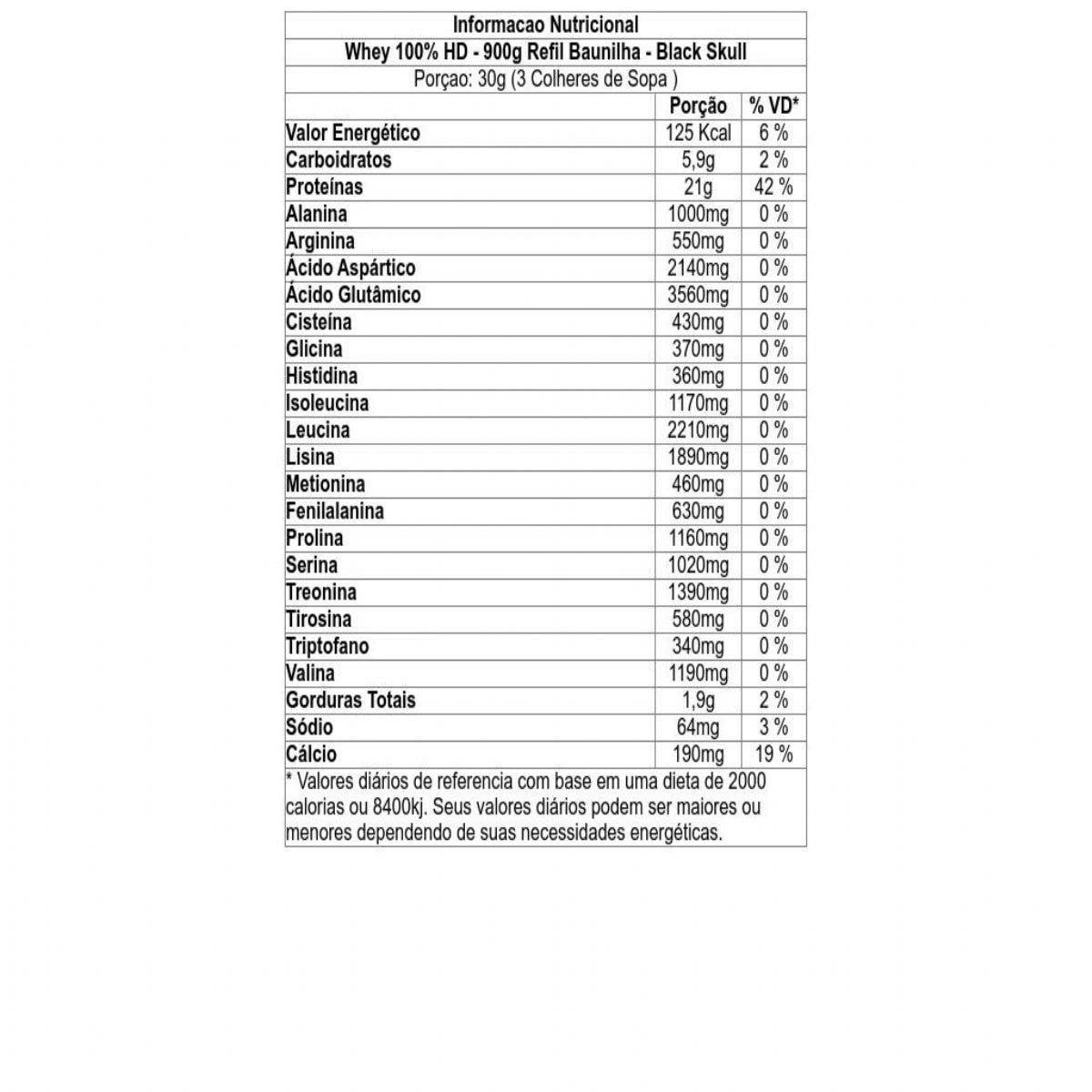 Especificação: Whey 100% Hd – 900G Refil Baunilha, Black Skull