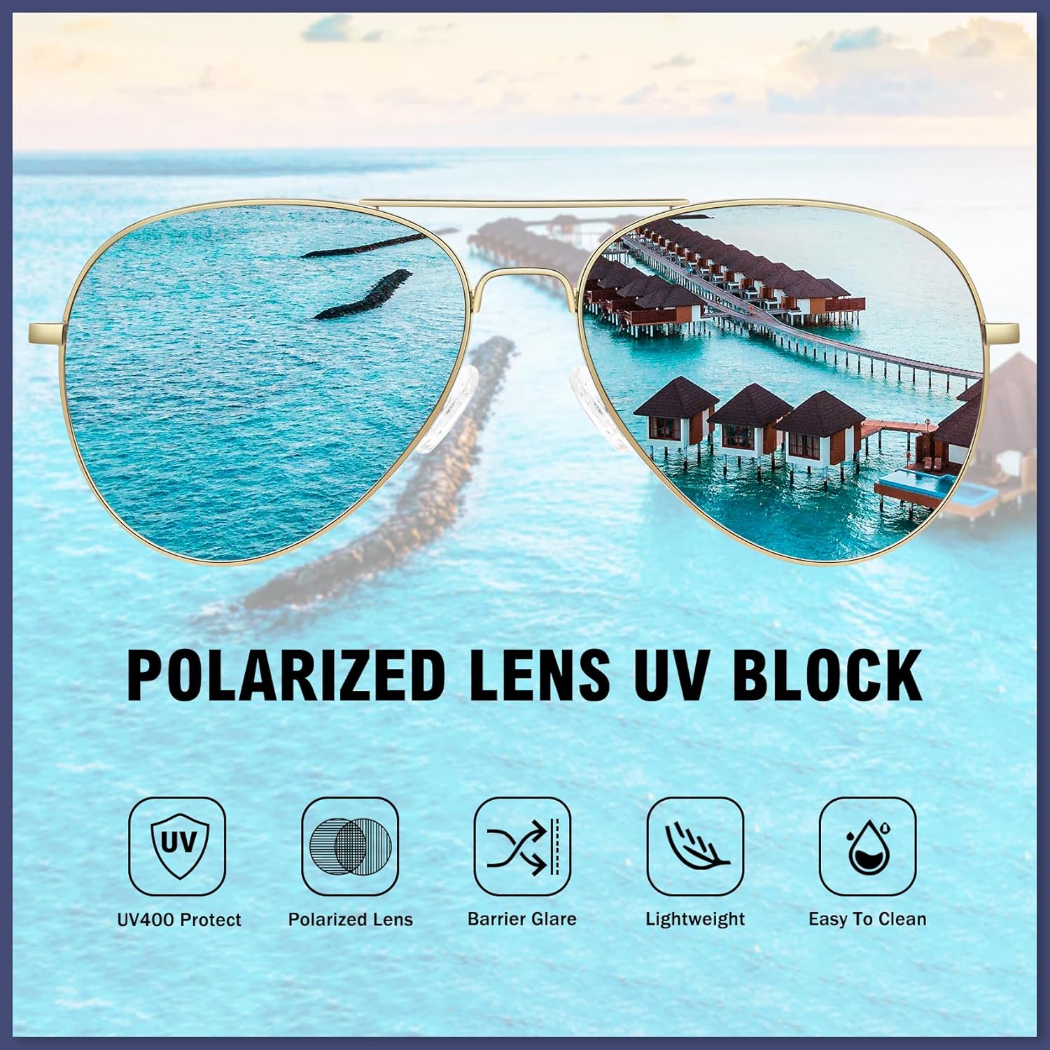 - Óculos de sol aviador polarizados – Veja o mundo ganhar vida com clareza deslumbrante com aviadores polarizados premium. Estas armações icônicas são equipadas com tecnologia de lente espelhada polarizada e eliminam 99,9% do brilho da luz solar brilhante e bloqueiam os raios UV prejudiciais.