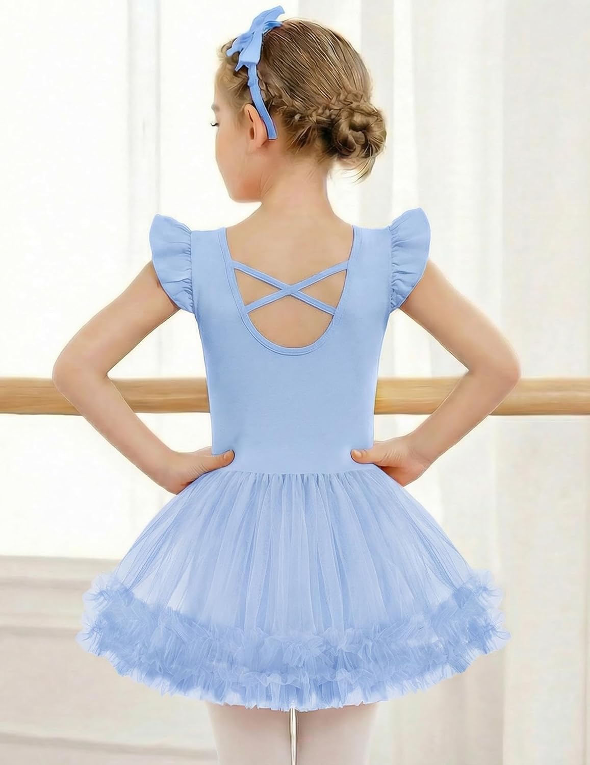 Zaclotre Vestidos de dança tutu para meninas com babados e mangas cruzadas nas costas, collant de balé infantil, fantasia de bailarina
