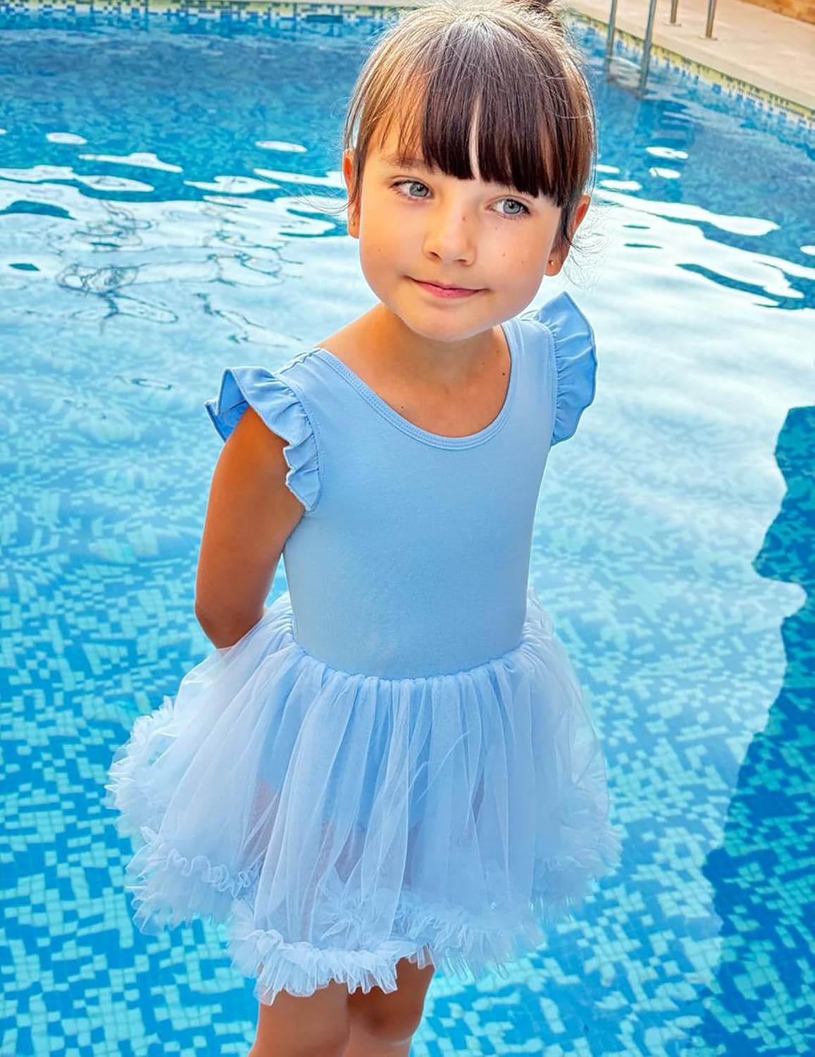 6 avaliações para Zaclotre Vestidos de dança tutu para meninas com babados e mangas cruzadas nas costas, collant de balé infantil, fantasia de bailarina