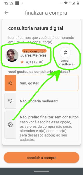 Constantemente a Natura atualiza suas plataformas. Em muitas destas atualizações, o consultor é removido. Para continuar me ajudando com meu trabalho de consultor e recebendo minhas recompensas, é necessário que sempre verifique se sou seu consultor antes de finalizar sua compra.Veja abaixo como consultar se estou selecionado como seu consultor e também como me selecionar como seu consultor Natura. Há, é recomendado que sempre atualize o aplicativo antes de iniciar sua compra. Quando há atualizações pendentes, os cupons de desconto não funcionam. Atualize e em seguida siga os passos abaixo: