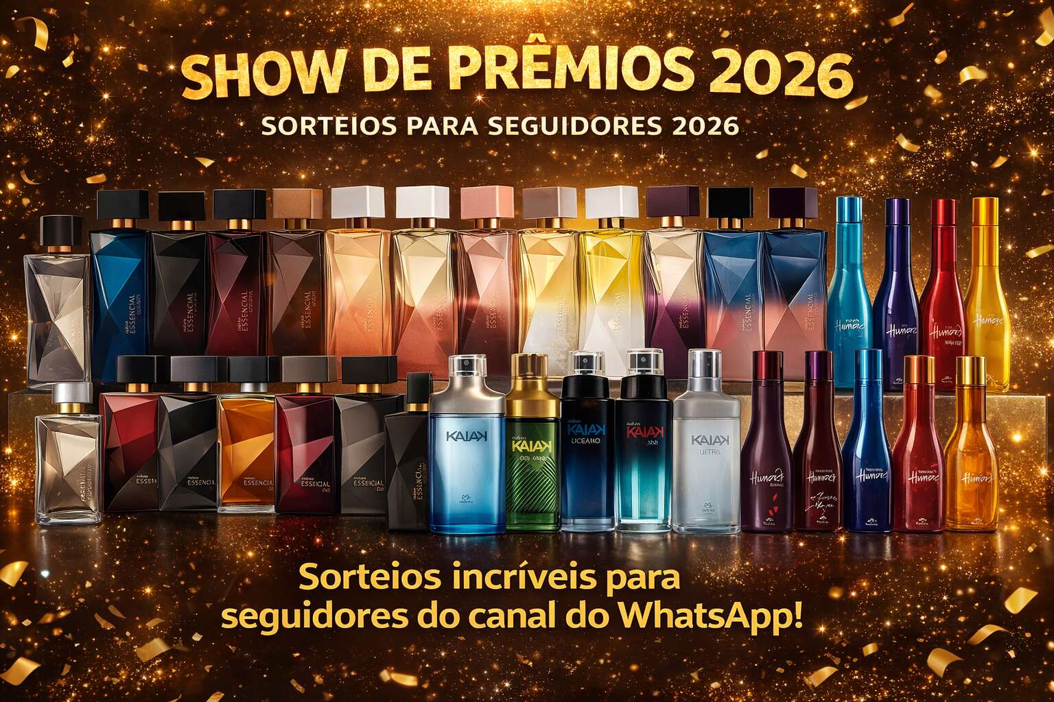 Desodorante Perfume Essencial Masculino ou feminino 100 mll à escolher.O sorteio será realizado automaticamente pelo sistema ao completar 1000 inscritos.A foto é meramente ilustrativa. O vencedor deverá escolher uma opção com uma unidade do produto que estiver disponível para o CEP do ganhador(Não vale kits e presentes).
